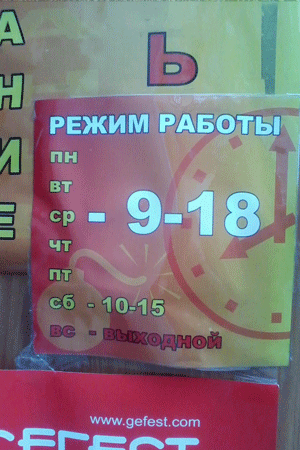 ПН-ПТ с 10-00 до 18-00, СБ, ВС выходной (выдача товара возможна по предварительной договоренности)